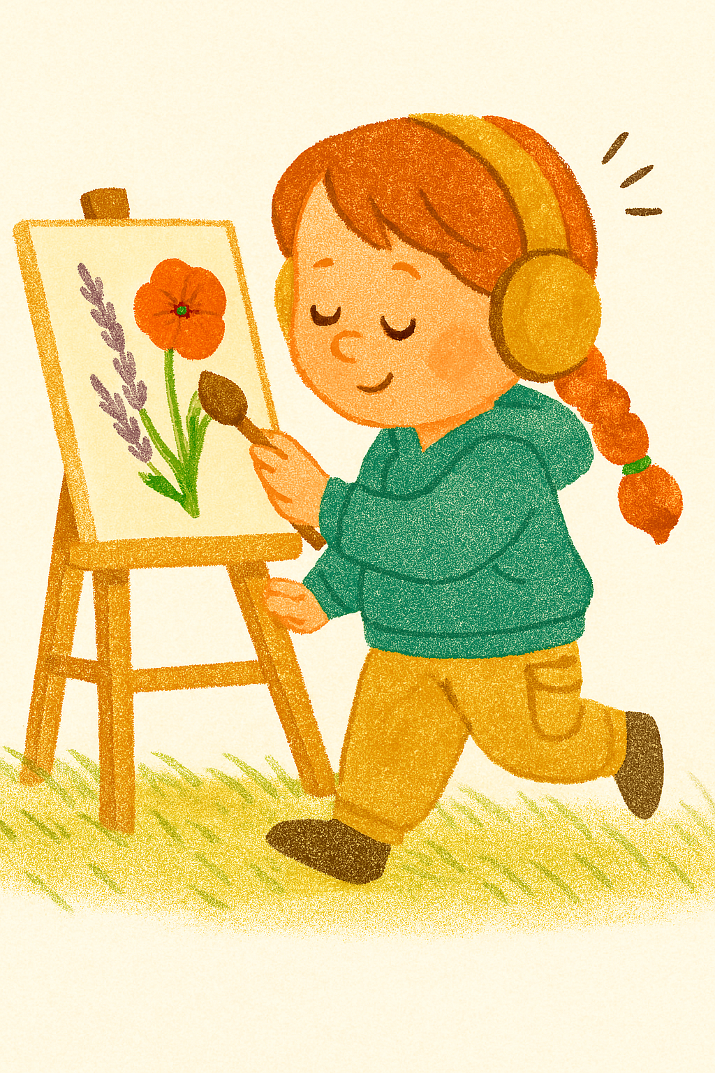 Jemné pozvání k učení. Symbol klidu, soustředění a důvěry v dětskou cestu. Vznikla z potřeby tvořit materiály, které šeptají místo křičí — obrazem, rytmem, příběhem.