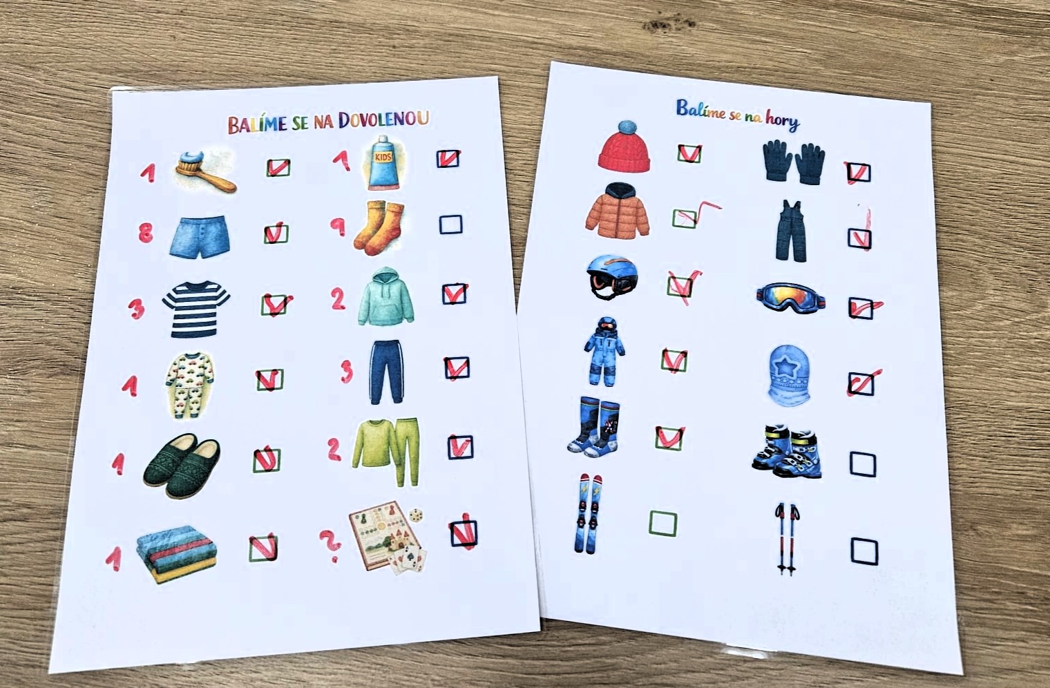 Balit se na dovolenou nebo na hory může být pro děti i rodiče buď stres, nebo krásná příležitost k učení. Proto vznikly tyto jednoduché, vizuálně čisté seznamy na balení, které si děti mohou odškrtávat samy.