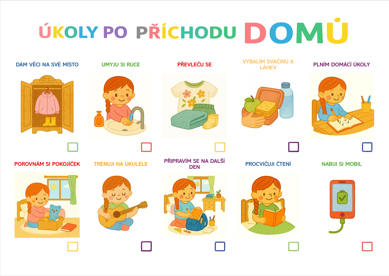 Ilustrace nemusí být statické – drobnými úpravami se dají snadno přizpůsobit tak, aby odpovídaly konkrétnímu příběhu nebo potřebám rodiny. Stačí změnit účes, aktivitu nebo předmět, kterému se dítě věnuje, a vznikne úplně nová scéna.